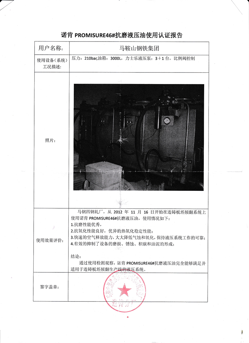 諾肯PROMISURE潤(rùn)滑油在馬鋼取得成功應(yīng)用
